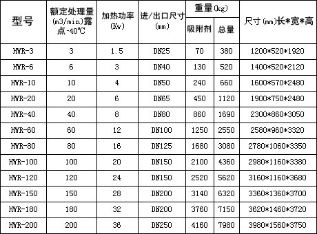 技术参数: 进气压力:0.4-1.0MPa 进气温度:≤40°C 再生气耗量:5%-8%额定处理量 压力损失:<0.021MPa 再生方式:微加热再生与自然再生 成品气含尘粒径:1um 成品气压力露点:-40°C(-60°C以下接受订货) 工作方式:两塔自动交替连续工作