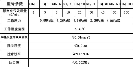 注:特殊规格可专为设计生产 结构及原理 本系列除油器主要由筒体、精滤组件组成,含油水的压缩空气从进气口进入筒体内经精度过滤,达到除油、除水的目的。