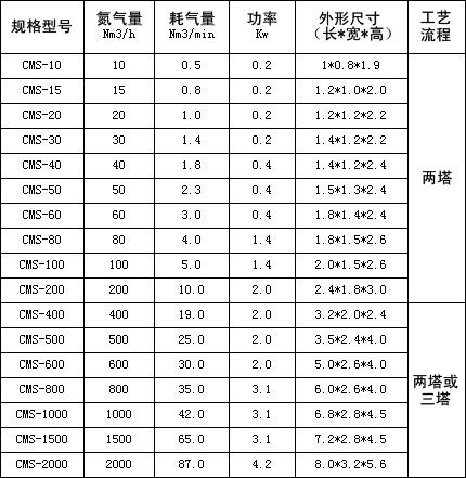 变压吸附分子筛制氮机(简称psa制氮机)是采用(psa)分子筛为吸附材料,根据变压吸附原理来制取氮气的设备。 在常温低压的条件下,利用氧气和氮气分子直径的大小差异,在分子筛相中形成吸附量和吸速率的差异,通过计算机测控其工作时序,从而获得高纯度的氮气。 原 理: 原料压缩空气经气源净化系统除去油雾、及水份等杂质后进入由二只填装有分子筛的吸附塔(psa组件),其中一只处于吸附状态,空气中的o2等杂质被吸附,从塔顶流出的即为氮气;同时另一只完成吸附的塔体迅速排空,脱除已吸附的o2等杂质,由计算机控制循环进行,连续供气。 jy/cms系列分子筛制氮机由压缩空气源、气源净化系统,变压吸附氧氮分离组件及自动控制和纯度监测等部分组成。 高性能的psa制氮专用分子筛,独特的分子筛装填、自动压紧技术,切换阀门,工艺流程及外形。结合计算机全自动测控系统,创造了jy/cms系列制氮机。 主要技术参数: 氮气产量: 1~2000nm3/h 氮气纯度:98~99.99% 氮气露点:≤-40℃ 氮气压力: 0.15~1.0mpa